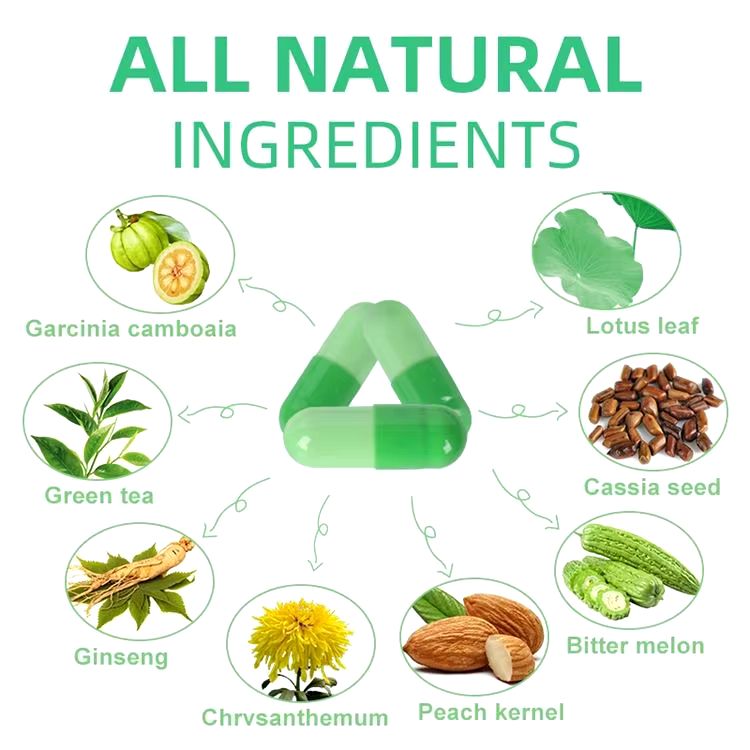 Our capsules are carefully formulated with a powerful blend of natural ingredients, including Garcinia Cambogia Extract, Green Tea Extract, Lotus Leaf, Cassia Seed, Bitter Melon, Peach Kernel, Chrysanthemum, and Winter Melon Peel.